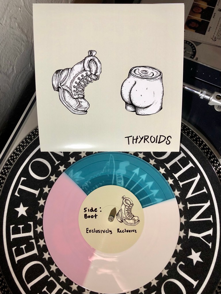 THYROIDS – A Swift Kick In The Ass 7” EP, “Exclusively Reclusive” b/w “Excessively Impressive” / “0106” (Turkey Baster 2022)