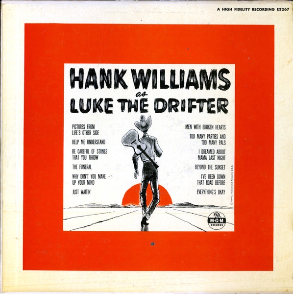 It’s really difficult to explain just how remarkable Hank Williams career and specifically his songwriting had gone completely atomic in the last three years of his life. After his brilliant cover of “Lovesick Blues”, a 1920s vaudeville number that was his first number one and garnered six encores during his legendary Grand Ole Opry debut, he followed it with a list of songs that might take other artists a decade to amass. It was during this period that Hank also began writing and recording a completely different set of songs that were like sermons, where he would talk more than he sang, and tell stories of sorrow and joy. It was decided to release these songs under the pseudonym “Luke The Drifter”, an alter-ego or as Hank would sometimes say, a relative of his. These folk recordings didn’t sell much, but were very influential on artists like Bob Dylan. I love the Luke material and have several of the different versions of the full album (except the red bordered original cover, which I really, really want), but for the playlist I only picked five songs. “Be Careful Of Stones That You Throw” never fails to make me weep. The most popular of the Luke songs was the haunting “Ramblin’ Man”, which didn’t appear on the album but is included on Mercury Nashville’s expanded edition. MGM would release it on a later album of the same name, and I chose to place it on the playlist within that sequence. If Hank had only written one song, “Ramblin’ Man” may have still made him a legend.